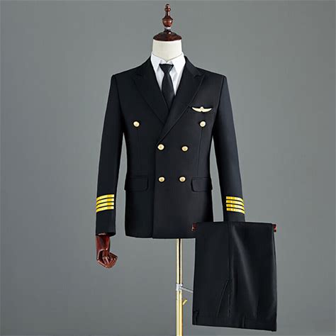 Men Airline Captain Suit Jacket Pants Pilot Blazer Aviator Costume